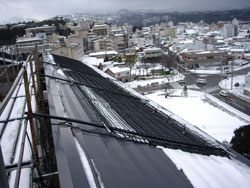 氷柱ができ、それが落下するととても危険ですので氷柱防止の為に設置されました。